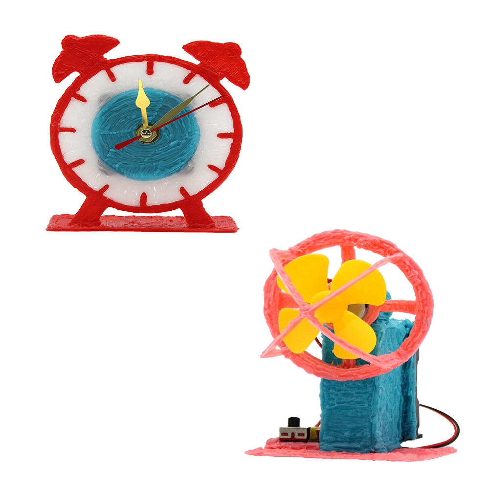 3D打印筆造電子造物套件適合幼兒園大班至小學六年級的學生綜合實踐課、STEAM創(chuàng)客教育和課外興趣班使用,學生原來設(shè)計打印筆手工作品都是在外觀造型上進行設(shè)計,而3D打印筆電子造物套件是通過電子元器件,例如:振動電機、迷你電機、LED燈、直流電機、開關(guān)、電池盒、干電池等以及其他配件與原有的3D打印筆外觀設(shè)計進行造物結(jié)合,使得每個作品都是可以互動的,大大增強了3D打印筆造物的趣味性,從而培養(yǎng)學生的創(chuàng)造力、空間想象能力、動手能力等各方面的能力。