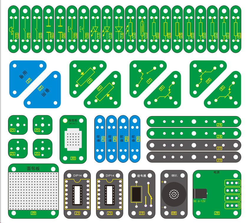 該套件它主要由分立元件、和PCB板組成;