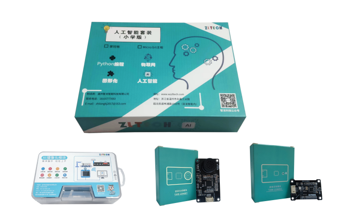 本人工智能套裝(小學(xué)版)可適用于浙江省小學(xué)信息技術(shù)課程,亦可用于開展小學(xué)高年段科技拓展課程,可同時使用圖形化和python語言進行編程。
